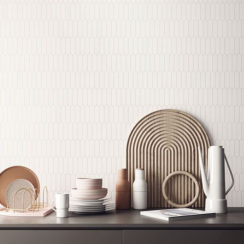 Immagine del pavimento serie Charme colore Biancospino, con alcuni oggetti posati sopra al pavimento realizzato con mosaico Esa in gres con effetto marmo bianco